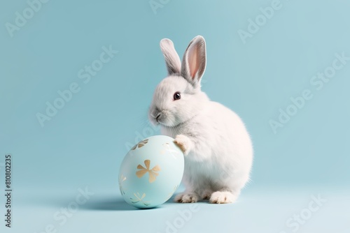 AI generated illustration of a white rabbit playing with an Easter egg