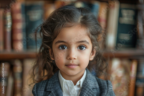 AI generated photo of small cute adorable girl dressed teacher costume