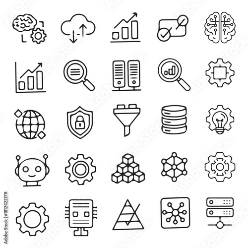 AI Line Icons Collection – Machine Learning, Cloud Data, Neural Network & Technology Outline Symbols