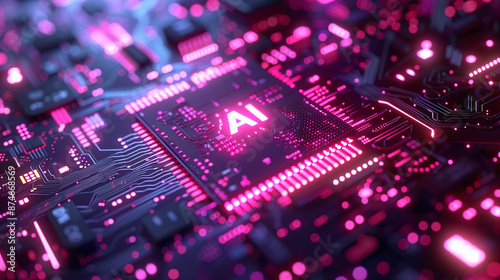 AI on Modern Neon Background: Futuristic Tech and Database Concept