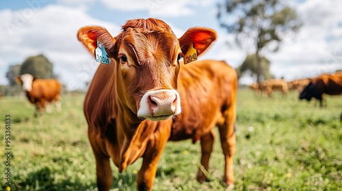 AI-enhanced system monitoring the body temperature and vital signs of livestock in real-time helping the farmer to maintain animal health Stock Photo with copy space