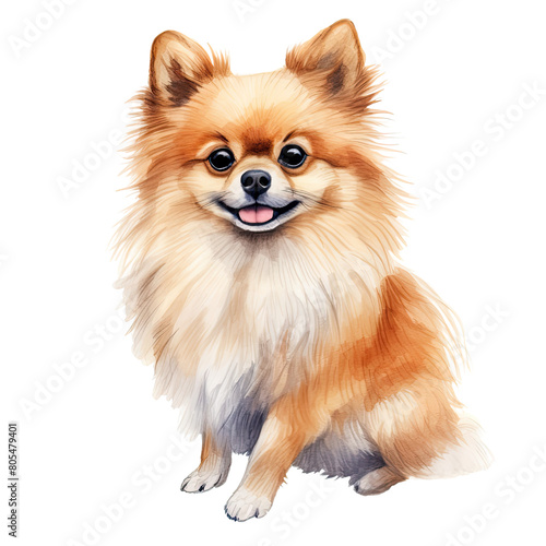 AI-Generated Watercolor cute Pomeranian Clip Art Illustration. Isolated elements on a white background.