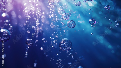 Air Bubbles Floating in Water with Blue and Purple Lighting