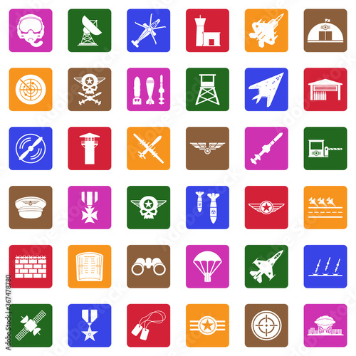 Air Force Icons. White Flat Design In Square. Vector Illustration.