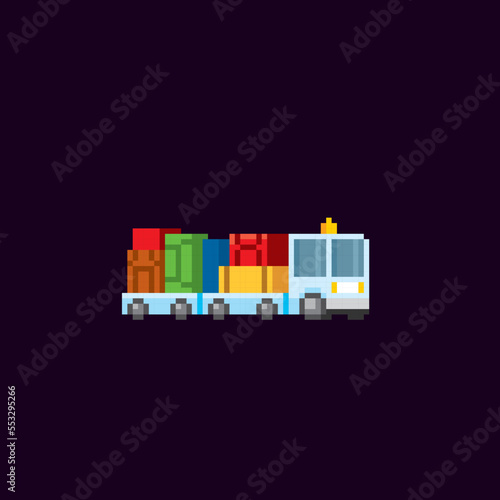 Airport baggage cart. Pixel art. Old school computer graphic. Element design stickers, logo, mobile app, menu. 8 bit video game. Game assets 8-bit sprite. 16-bit.