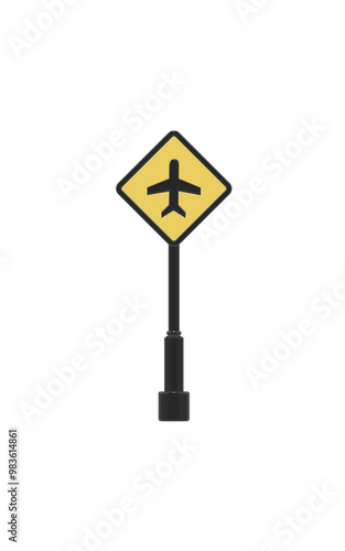 Airport yellow sign on white transparent