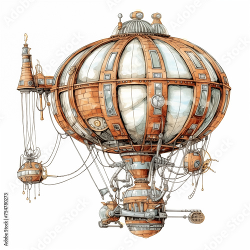 Airship Steampunk Retro. Air Balloon Illustration on White Background.