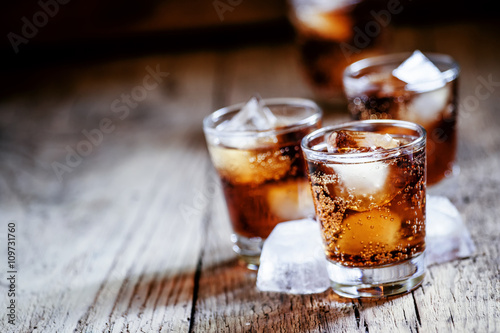 Alcoholic cocktail bourbon cola with whiskey and ice cubes, vint