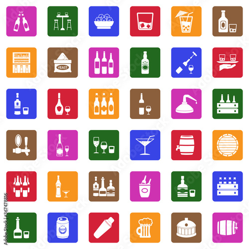 Alcoholic Drinks Icons. White Flat Design In Square. Vector Illustration.