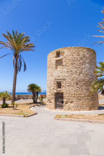 Alghero, Sardinia, Italy. The fortress tower on the coastal bastion