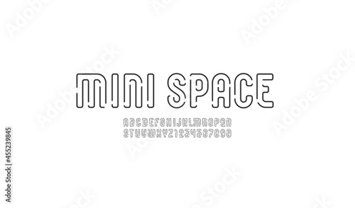 Alphabet with gap, black font from line, futuristic letters and numbers, vector illustration 10EPS