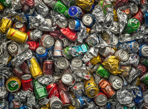 Aluminum cans and foil forming recycling background