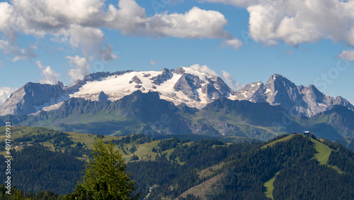 Amazing landscape to the Marmolada and its glaciers during summer time. It is the highest mountain of the Dolomites. Italian alps