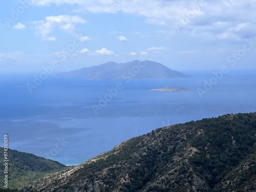 Amazing mountain in see Rhodos island Greece panorama aerial view