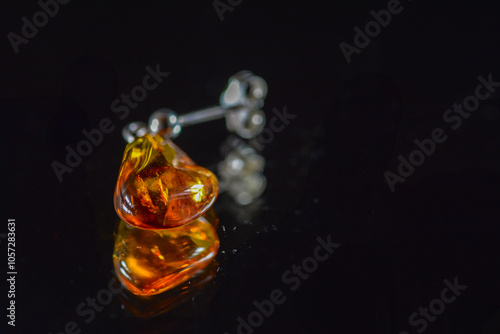Amber earring concept photo with text space