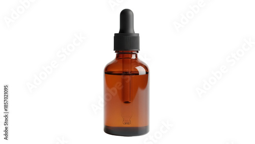 Amber glass bottle with dropper isolated PNG, essential oil container on transparent background for aromatherapy and skincare products