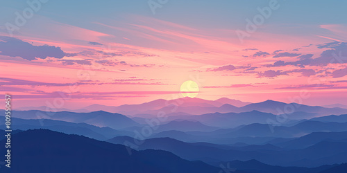 Ambient background, sunrise sunset beautiful backdrop wide panorama, soft color graphic design digital art illustration, generated ai