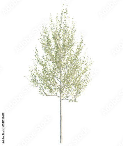 American Sycamore tree cutout, front view, transparent background, isolate, Young birch tree with delicate new leaves, perfect for spring and nature scenes