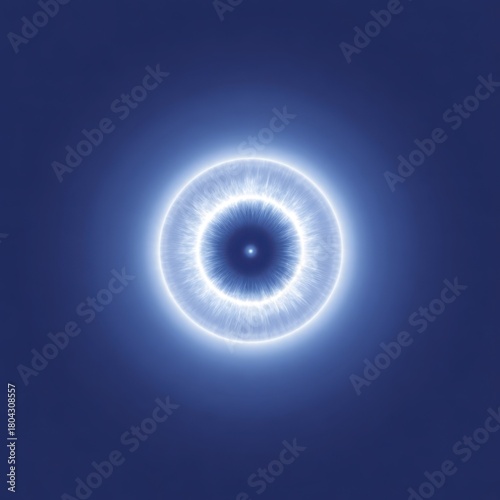 An abstract blue ring of light pulsates with tiny white particles against a dark blue background, creating a sense of cosmic energy.