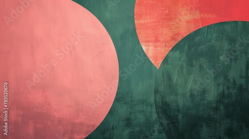 An abstract composition in Hunter Green and Raspberry with negative space, exploring relationship complexities through a Dharma lens. Minimalist and introspective.