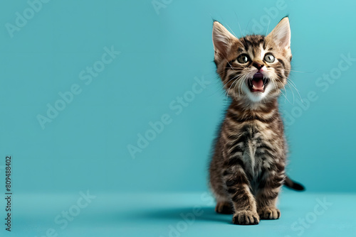 An adorable cat image sits against a blue background. Advertising banner design for a veterinarian clinic or pet store.