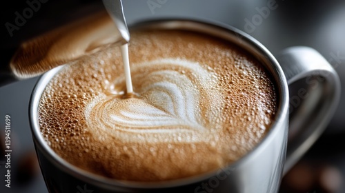 An artistic coffee cup with milk carefully poured to create a heart shape, expressing love and creativity in a beverage.