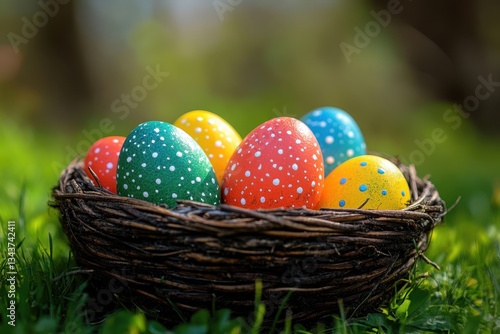 An artistic depiction of chaotic Easter celebrations with fruits like oranges and apples in a raw setting.