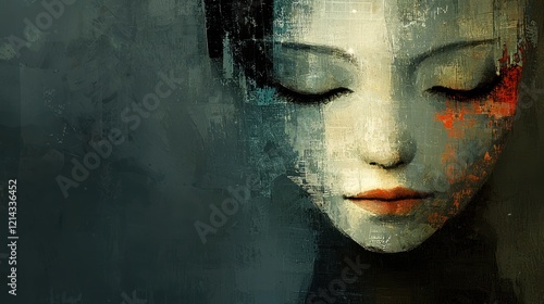 An artistic representation of a shy face, with subtle colors and a soft expression