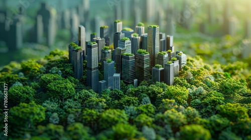 An Earth 3D model presenting a green cityscape