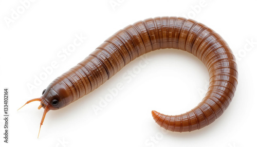 an earthworm on a white background . Being an important element of the ecosystem, it helps to improve the soil structure.