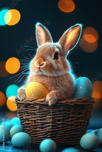 An easter rabbit with a basket full of easter eggs