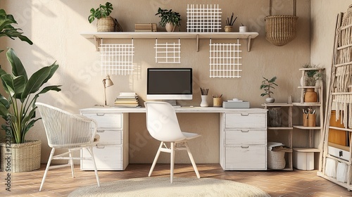 An eclectic home office radiating Bohemian charm