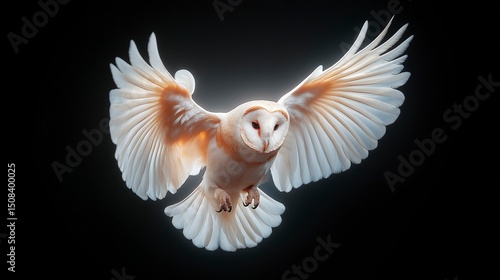 An elegant barn owl glides through the night, illuminating the darkness with its ethereal flight and distinct, glowing feathers Generative AI