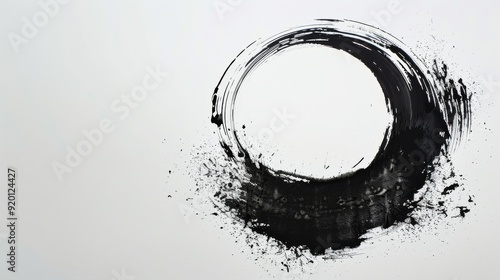 An elegant depiction of a black ink enso circle, symbolizing enlightenment and simplicity beautifully