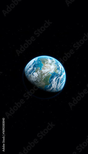 An ethereal blue marble, our Earth, hangs in the vast expanse of space, its atmosphere swirling with clouds as it orbits the life-giving sun alongside the solitary moon