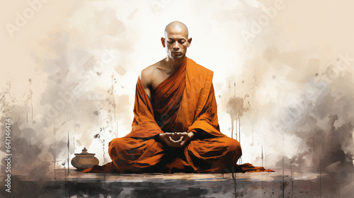 An evocative sketch of a meditating monk, their serene expression an embodiment of inner peace and enlightenment