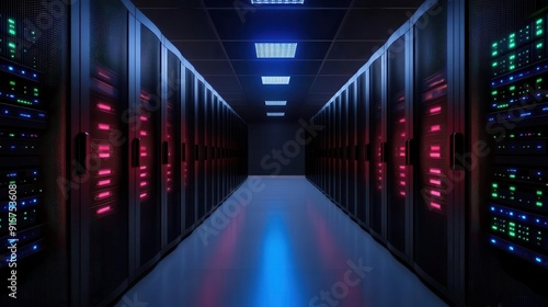 An illuminated server room showcasing high-tech data storage solutions with vibrant LED lights and a sleek, modern design.