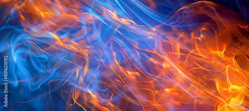 An image of an abstract pattern with soft swirls and angular shapes in electric blue and fiery orange, emphasizing texture with HDR photography techniques