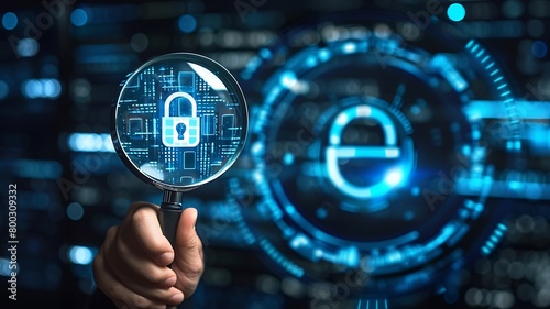 An Individual Gazes through a Magnifying Glass, Delving into the Intricacies of a Lock Icon - A Cybersecurity and 3FA Concept