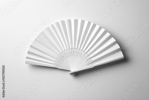 An isolated mockup of a white folding hand fan on a white backdrop. Generative Ai
