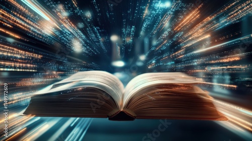An open book glowing with light symbolizing knowledge and learning