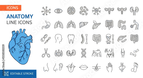 Anatomy Line Icons Detailed Human Internal Organs for Medical Illustrations and Health-Related Projects