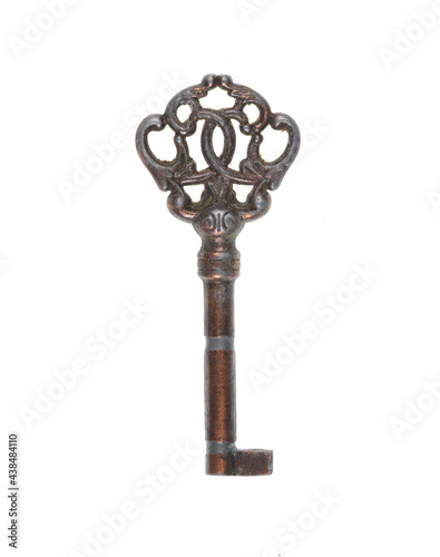 ancient bronze key isolated on white background