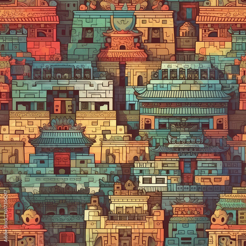 Ancient China seamless repeat pattern - fantasy colorful cubism, abstract art, trippy psychedelic [Generative AI]