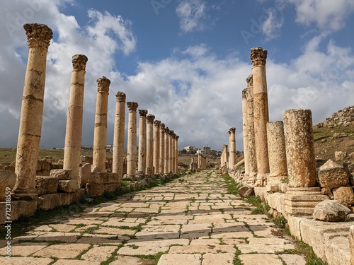 ancient Roman structures in Jerash city,Gerasa, Jordan, hippodrom, amphiteatre,theatres and columns of the ancient Roman civilization made out of sand and marble stone