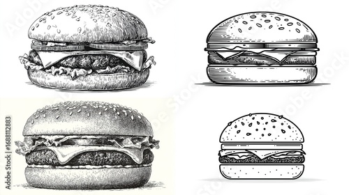 and keyword set based on your image Engraved Burger Illustrations Delicious Food Art
