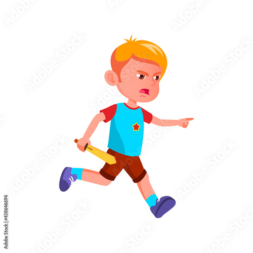 angry boy running after friend with sword on playground cartoon vector. angry boy running after friend with sword on playground character. isolated flat cartoon illustration