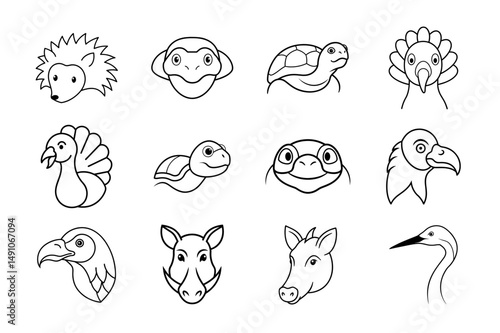 Animal Head Line Art Vector Set