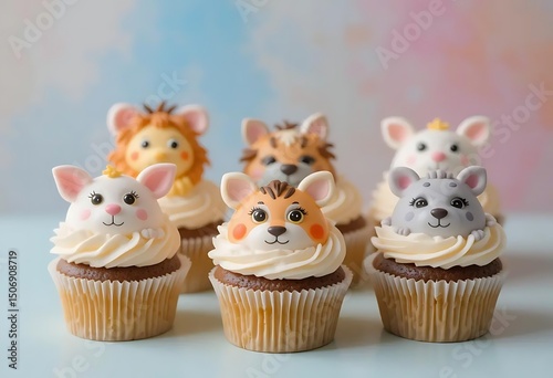 Animal Theme Cupcakes with Cream Frosting and Chocolate Cake