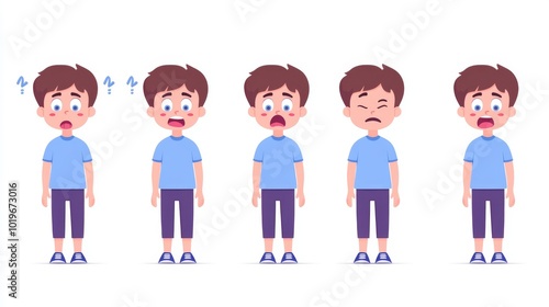 animated boy showing discomfort, facial